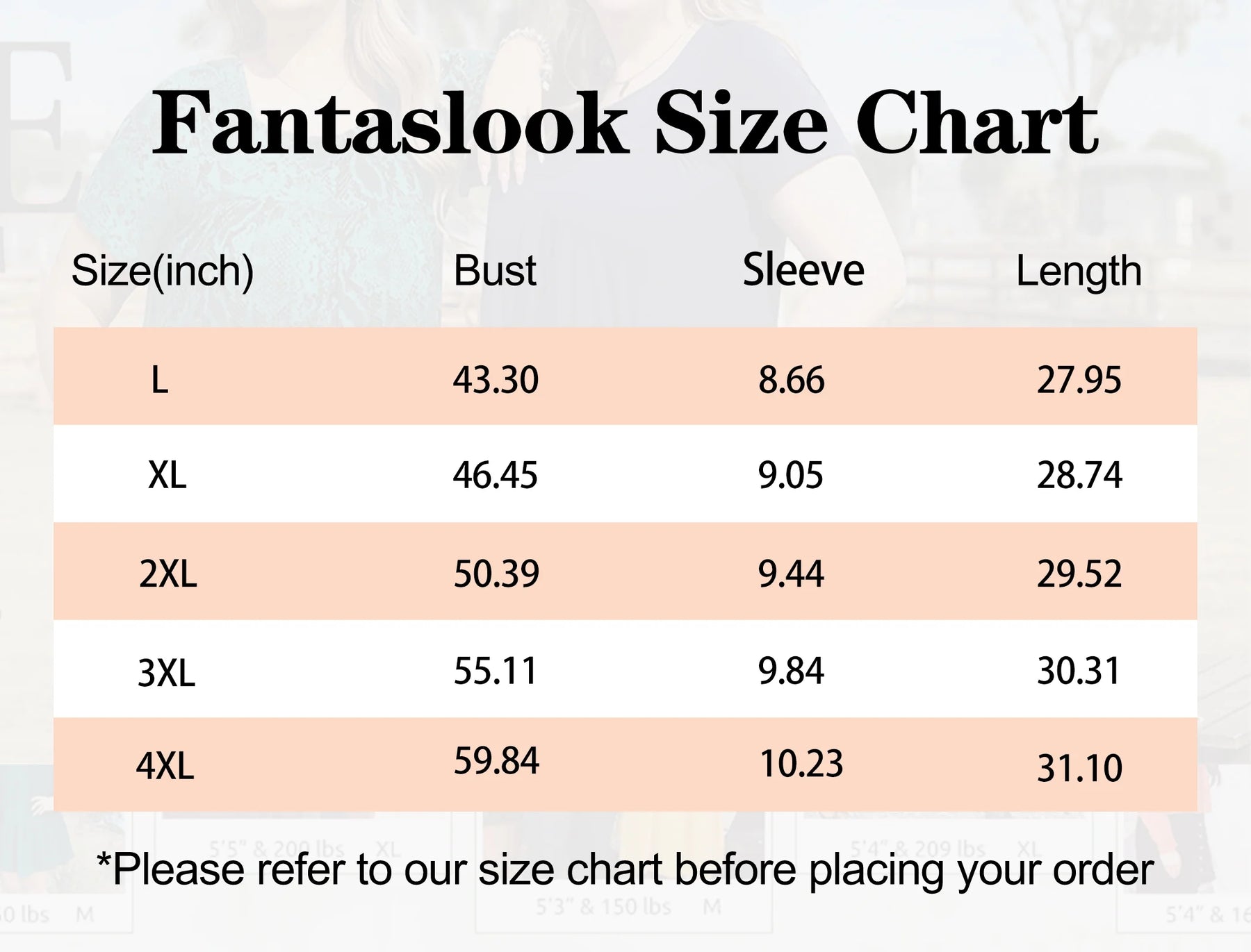 Fantaslook Womens Plus Size Tops Tunic Short Sleeve Shirts Floral Blouses Loose Summer Tops