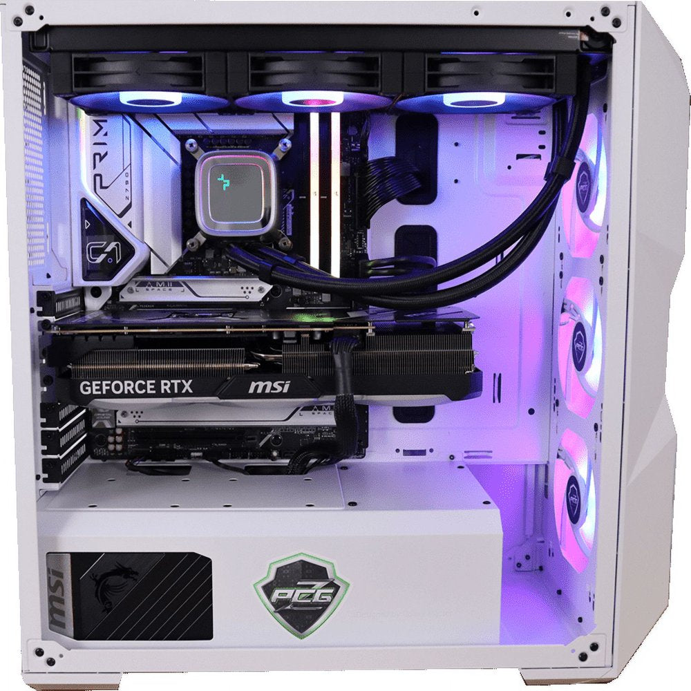 - {RGB WHITE GAMING PC CASE} Built in a high-quality white gaming tower computer with (x5) RGB 120mm fans for max cooling; A perfect white PC case as-is with room to grow; Supports full-size GPU and AIO Water Cooling for future expansion