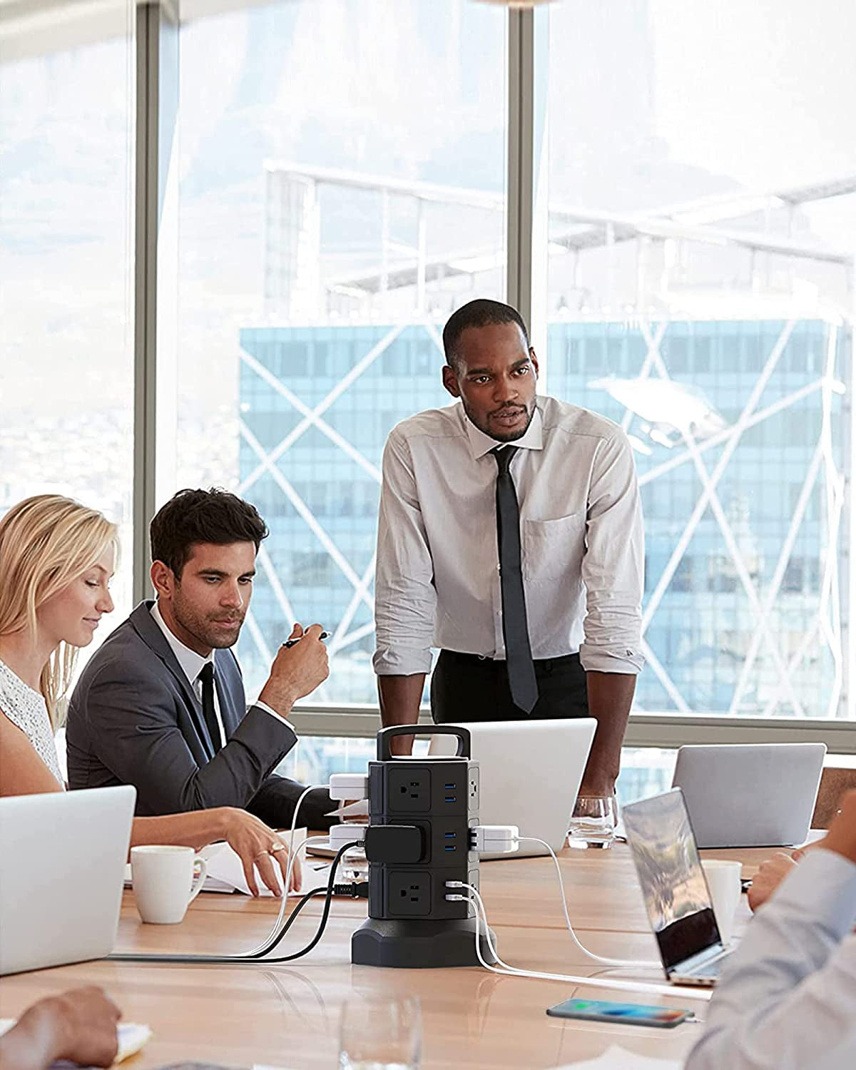 This multifunctional plug tower has been chosen by many schools and teachers, is a good space saver, allowing you to power up your tablet, phone computer, laptop, printer, water dispenser, and other electronic devices.