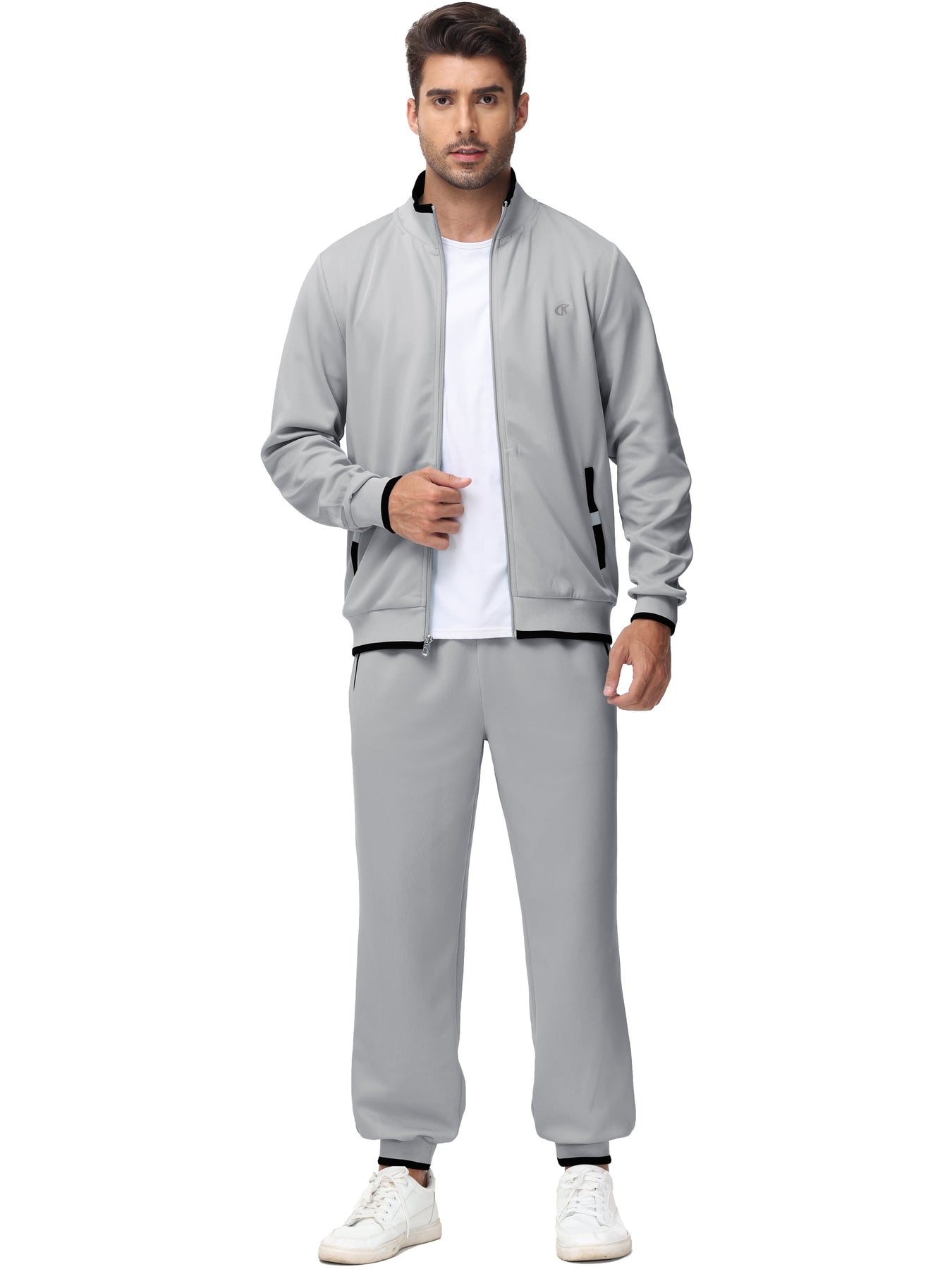 Pdbokew Men's Tracksuits Sweatsuits for Men Set Track Suits 2 Piece Casual Athletic Jogging Warm Up Full Zip Sweat Suits.A classic never goes out of style.Bold stripe stretch from collar to cuff on this track suit. The jacket has a retro funnel necks stand-up collar.Lightweight, comfortable mens tracksuits made with polyester material and stylish design, fits for all seasons active wear.OCCASIONS: Casual and Fashion Style, Perfect for Everyday Wear, Wandering, Out to Play, Home Improvement, Gym, Hiking, Running, Jogging, Activewear, Workout, Fitness.Solid color Tracksuit Set is the newest fashion, fashion design make you more charming, vibrant,and attractive.Mens Jogging Suits are Good gift choice for your Husband, Father, Son, Boyfriend and Friends.