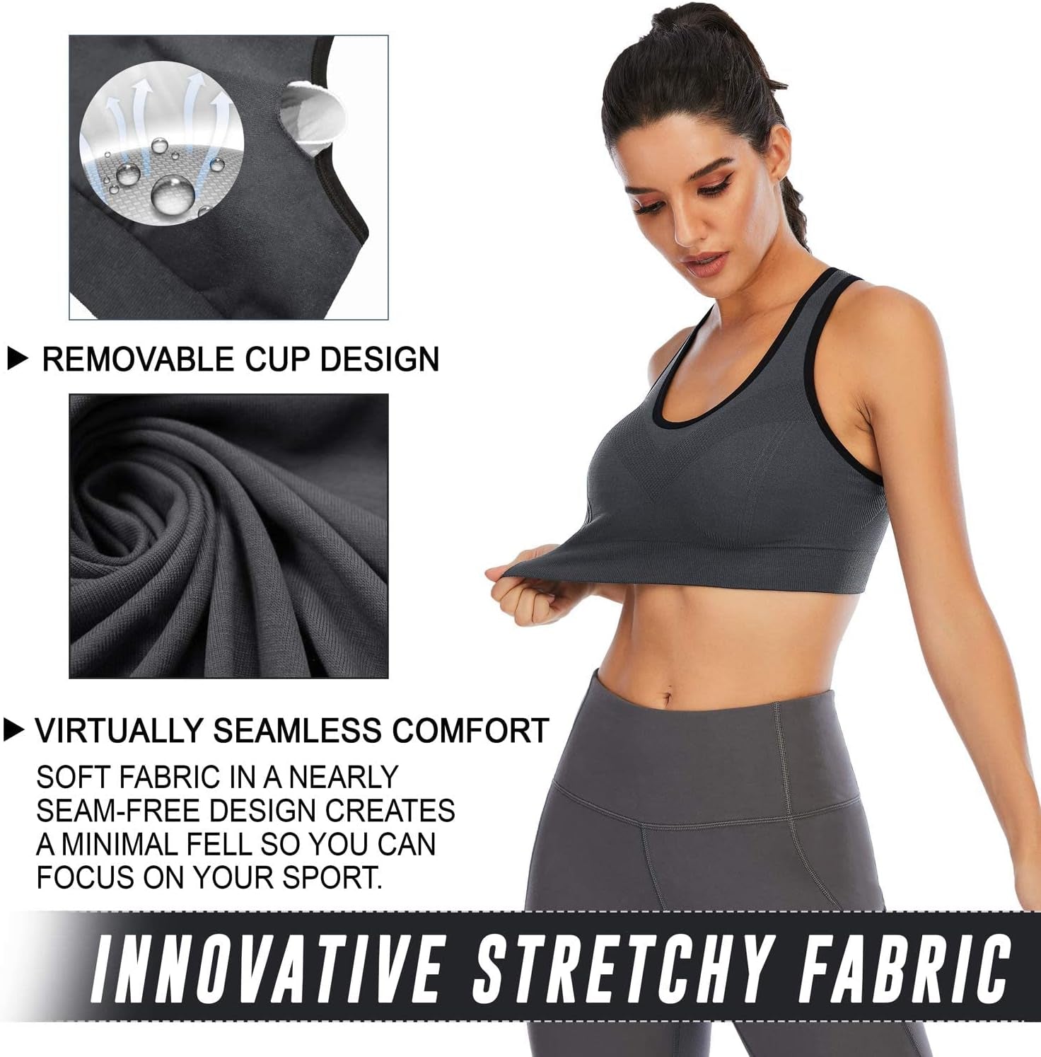 Take sweat out of the equation with these Ewedoos padded sports bra. Our high level of support comes in an ultralight and breezy padded design that keeps you comfortable and focused. The overlay across the chest minimizes bounce, prevents spillage and adds an extra layer of support so you can feel CONFIDENT while you move.