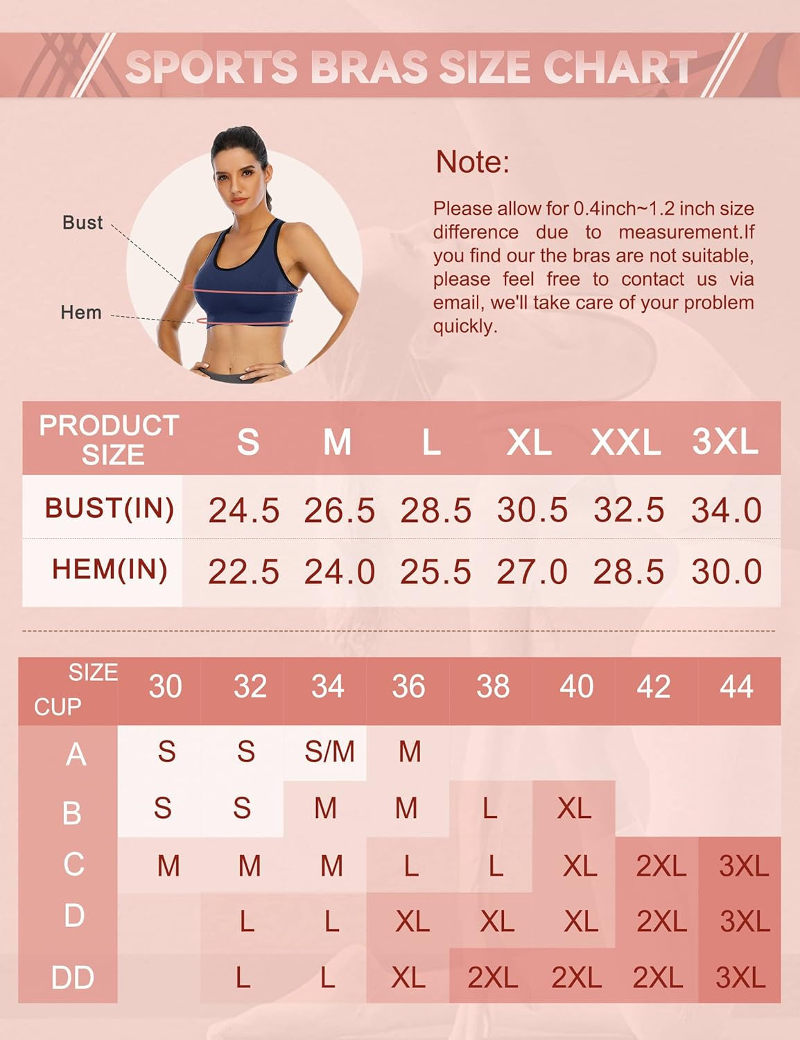 There are 5 sizes (S/M/L/XL/2XL) available for the tops. Please allow 1 inch differences due to manual measurement, thanks for your kind understanding.