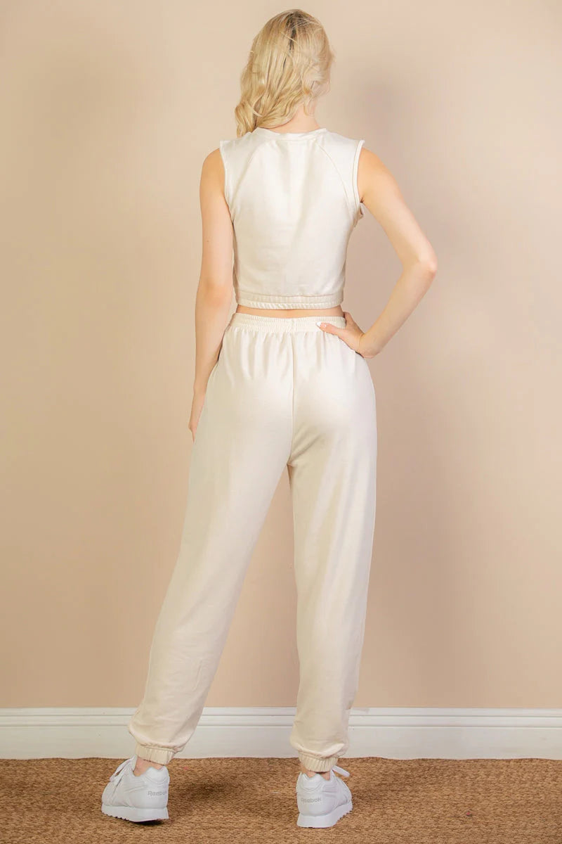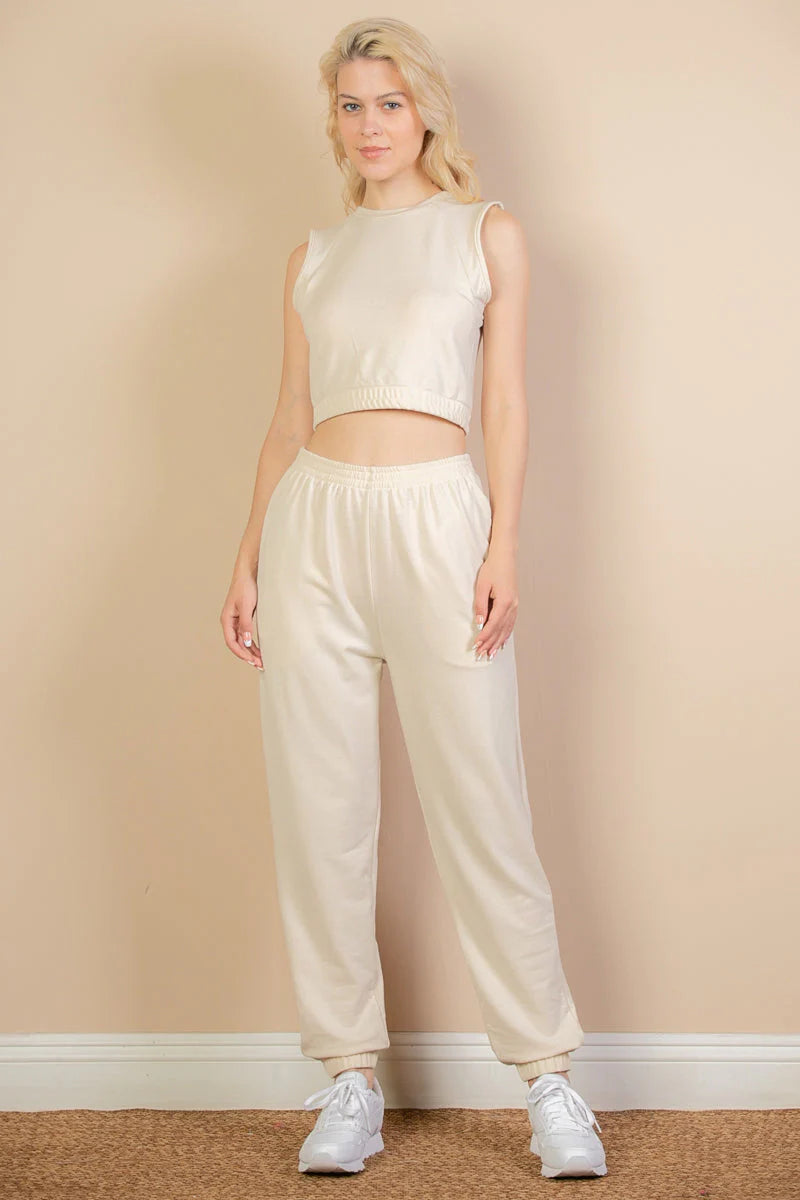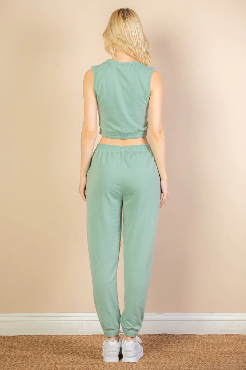 - French Terry tank top & joggers set featuring an elastic waist